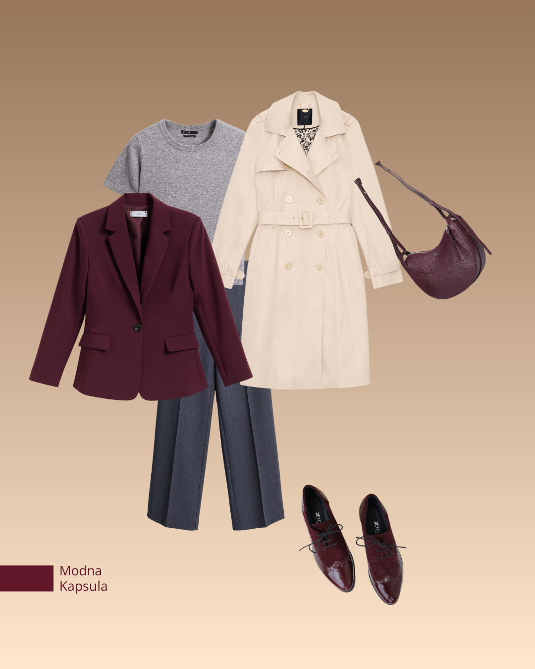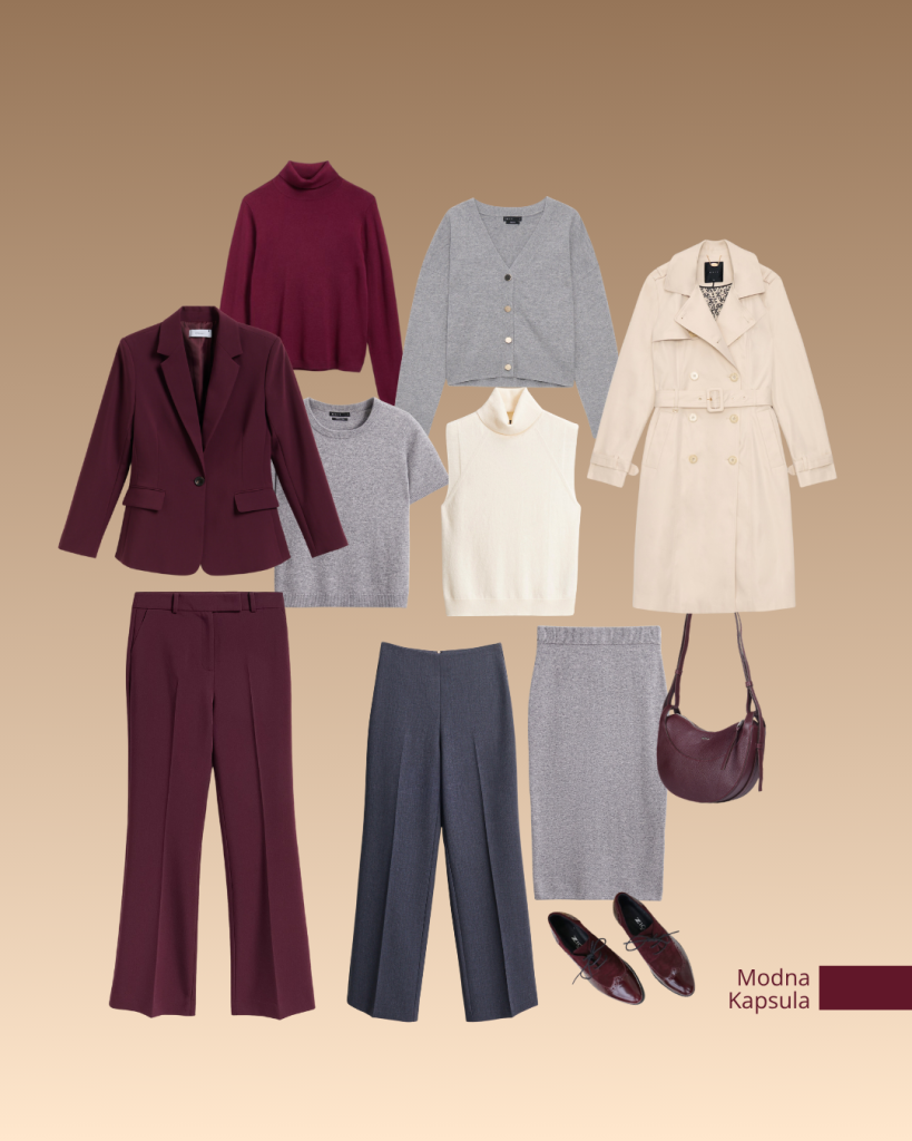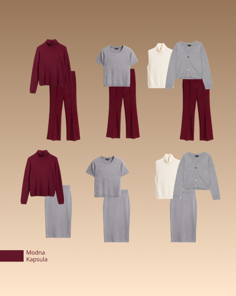U maloj modnoj kapsuli izdvojili smo nekoliko primera i pokazali na koji način burgundi odevni predmeti mogu osvežiti neutralnu garderobu. Svi prikazani artikli dostupni su u prodavnicama u našem regionu.