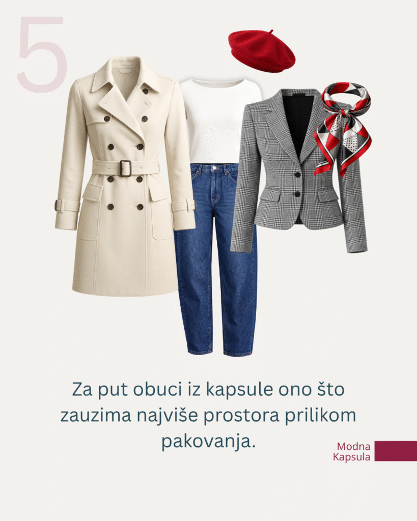 Jedan praktičan savet: na put obuci ono što zauzima najviše prostora u koferu – mantil, čizme ili teže cipele, džemper. Tako u ručnom prtljagu ostaje mesta za kozmetiku, veš i još jedan par laganih cipela.