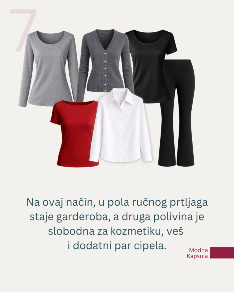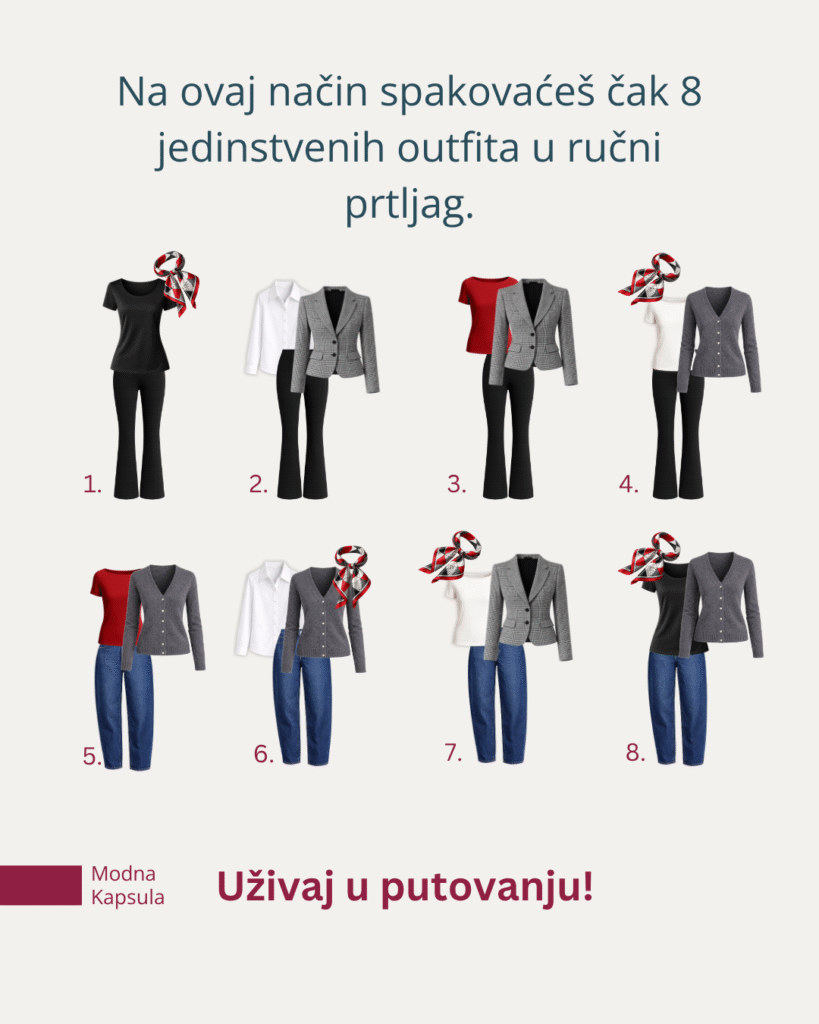 Osam do deset jedinstvenih outfita. Ručni prtljag. Bez dodatnih troškova i čekanja na prtljag po sletanju.