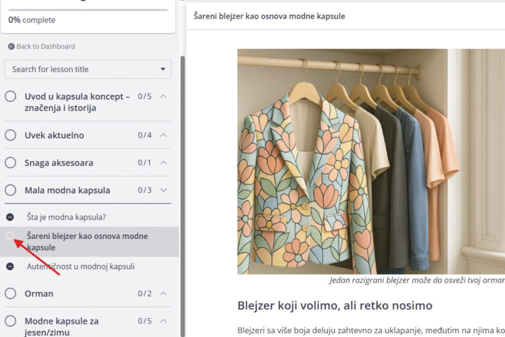 Program „Modnim kapsulama do funkcionalnog ormana“ nalazi se na platformi Payhip. Svakog meseca objavljujemo članke i lekcije na zadatu temu, a početkom meseca deo sadržaja je dostupan besplatno.