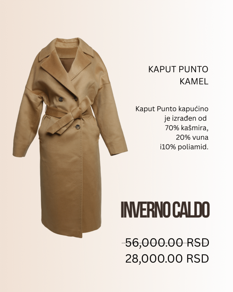 Da bismo postigli sličan efekat, dovoljno je da izaberemo kamel ili bež kaput koji odgovara našem budžetu. Zatim ga kombinujemo sa bež ili veoma svetlim pantalonama i dodamo jednostavan, svetao džemper. Bele patike ili nežne ravne čizme zaokružuju odevnu kombinaciju.