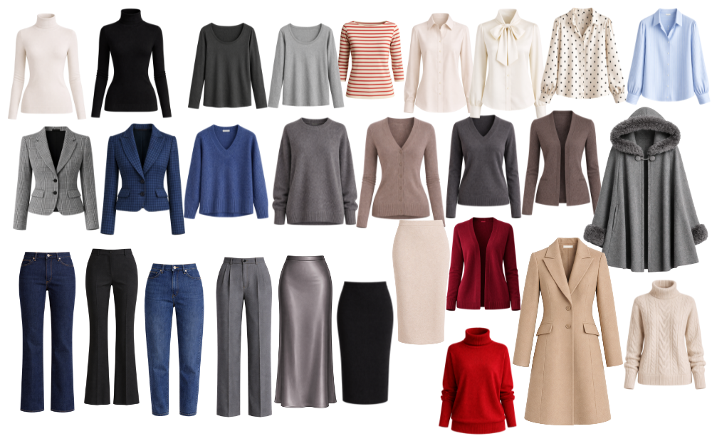 Takav garderober uključuje pantalone, suknje, haljine, gornje delove, slojeve poput blejzera i džempera, kao i kapute ili jakne. Njegova uloga nije da reši konkretnu namenu tipa šta nositi prilikom javnog nastupa ili odevne kombinacije za svečane prilike tokom zime, već da dugoročno smanji konfuziju u ormanu. Kapsula garderober se formira sporije, oslanja se na stabilnu osnovu i menja se postepeno, najčešće sezonski.