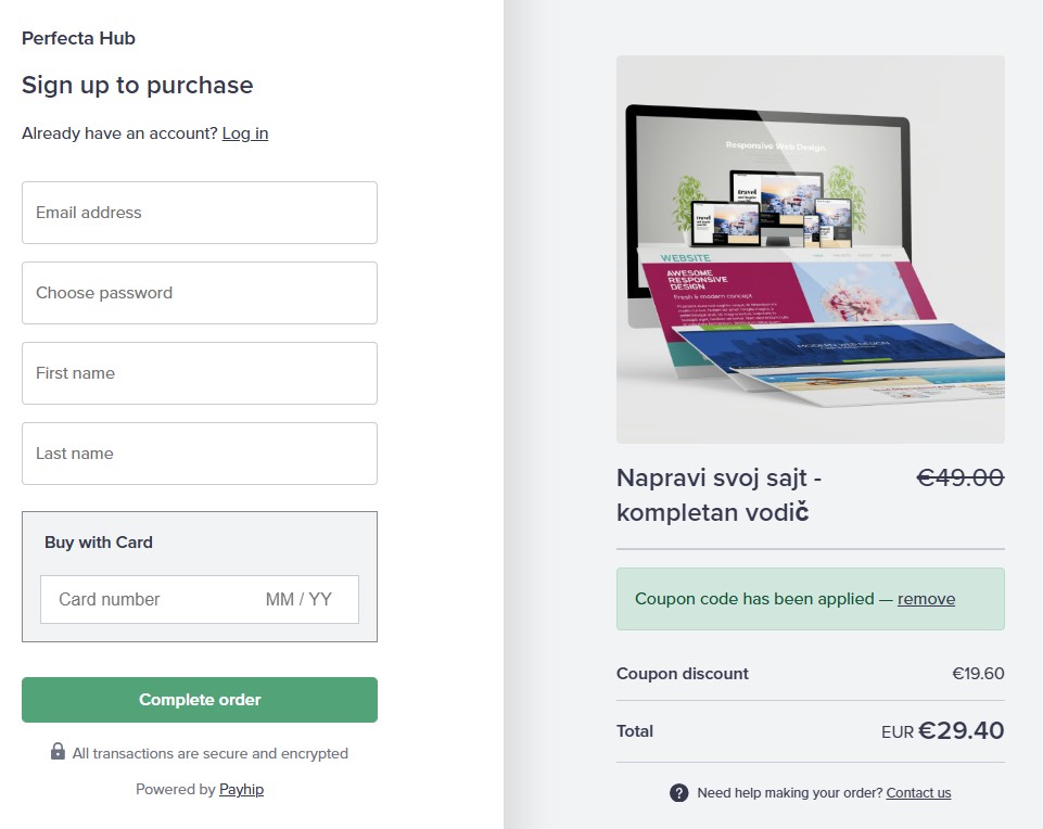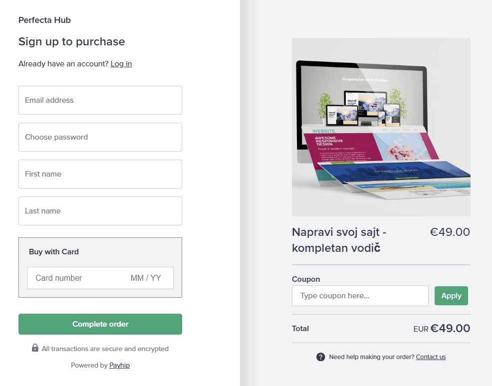 Kurs je dostupan na platformi Payhip, britanskoj platformi integrisanoj sa poznatim i sigurnijim načinima plaćanja uključujući kartice i PayPal.